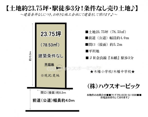 宇治市 木幡中村 土地(条件なし・23.75坪・更地・駅歩3分)の基本情報